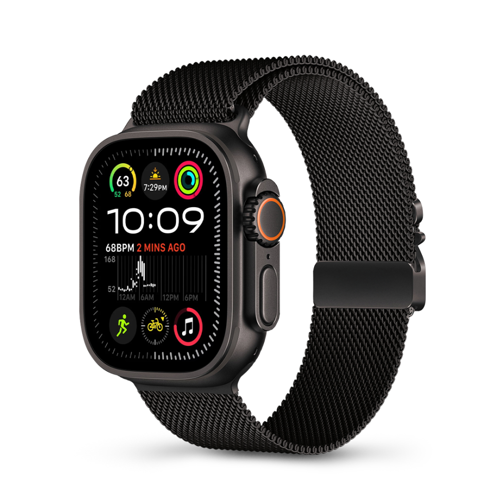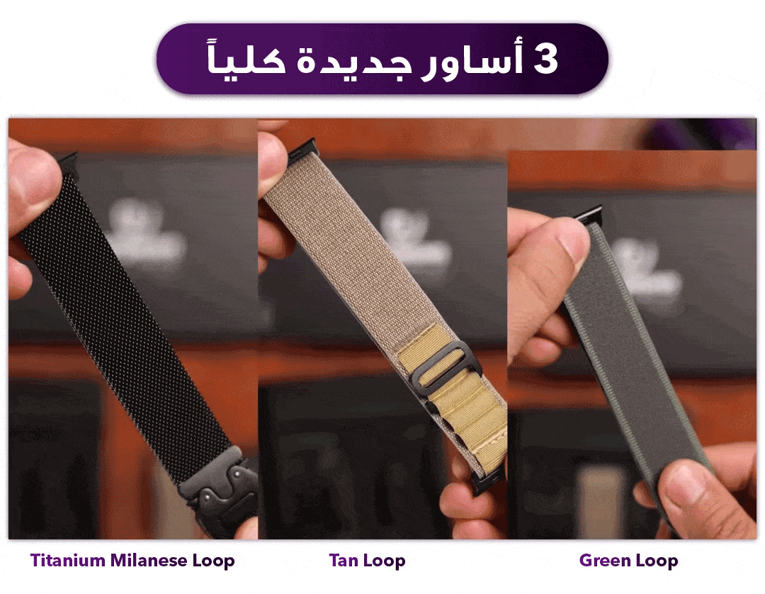 بكج ساعات أرجوان ألترا 2 المطور يجمع بين تقنية متطورة وتصميم أنيق بساعة سوداء مع حزام ميلانيز، مناسب للرياضيين ومحبي المغامرات مع ميزات صحية متقدمة وعمر بطارية طويل.