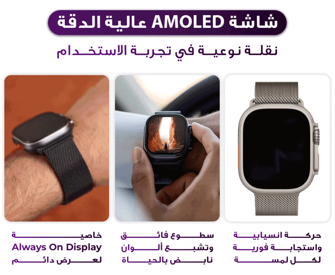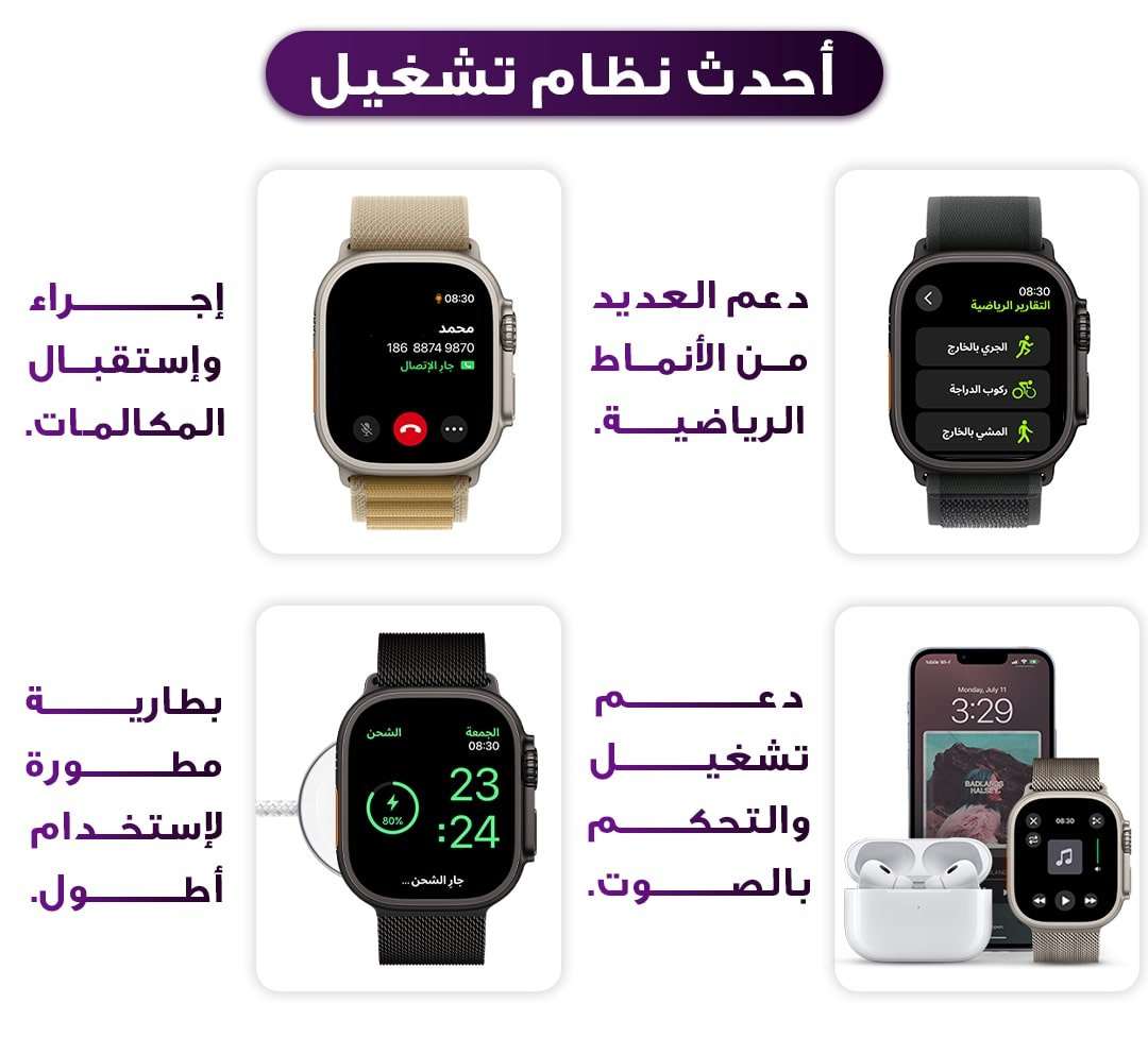 احصل على بكج أرجوان ألترا 2 المطور ساعة سوداء الآن من متجر zeroo وارتقِ بأسلوب حياتك الرياضي والعملي مع ساعة تجمع بين التكنولوجيا والفخامة.
