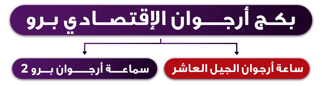 بكج أرجوان الاقتصادي برو يوفر لك ساعة ذكية بأداء مميز وتصميم أنيق متوفر بألوان الأسود، الذهبي، والفضي لتلبية جميع الأذواق مع خصائص عملية تناسب الاستخدام اليومي.