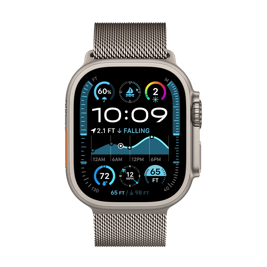 بكج ثنائي يجمع بين ساعتين ألترا بتصميم التيتانيوم القوي وشاشة Retina دائمة التشغيل، مناسب للرياضيين ومحبي المغامرات مع ميزات متقدمة وعمر بطارية طويل ومقاومة عالية للماء.