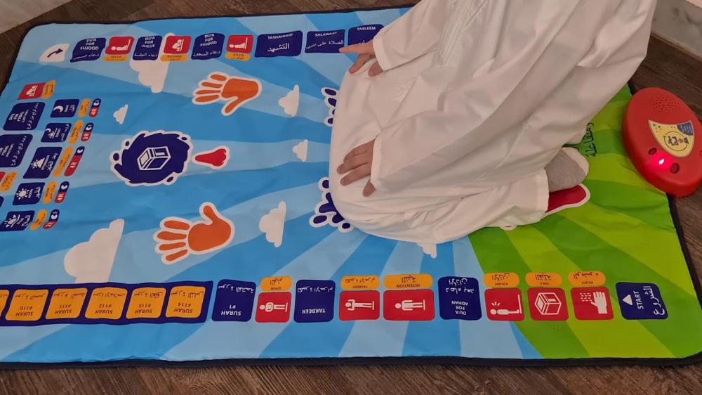 - اسم المنتج: سجادة تعليم الصلوات الخمس والوضوء الإلكترونية الصوتية